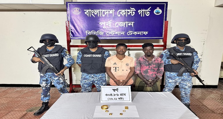 বিএনএ, কক্সবাজার: কক্সবাজারের টেকনাফে প্রায় ৪৬ লক্ষ টাকা মূল্যের ৩০৪.৮৬ গ্রাম স্বর্ণসহ ২ জন পাচারকারীকে আটক করেছে কোস্ট গার্ড।