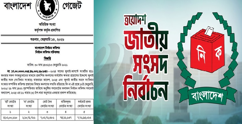 গত বৃহস্পতিবার সারাদেশে উৎসবমুখর পরিবেশে ত্রয়োদশ জাতীয় সংসদ নির্বাচন ও সংবিধান সংস্কারের ওপর জাতীয় গণভোট অনুষ্ঠিত হয়। পরে শুক্রবার দুপুরে নির্বাচন কমিশন ২৯৭ আসনের চূড়ান্ত ফলাফল ঘোষণা করে।