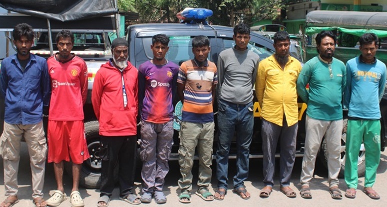 আটকরা হলেন- সৈয়দ আলম (৪৫), সুলতান আহম্মদ (৫৫), মো. ইউসুফ (৪৫), মো. কাসিম (৩০), মো. ইসমাইল (৪০), শাহ আলম (৩৫), আজম উল্লাহ (৫৭), মো. ফারুক (২৫) ও ছানাউল্লাহ (৫৭)। এদের মধ্যে কয়েকজন রোহিঙ্গা নাগরিক বলে জানা গেছে।