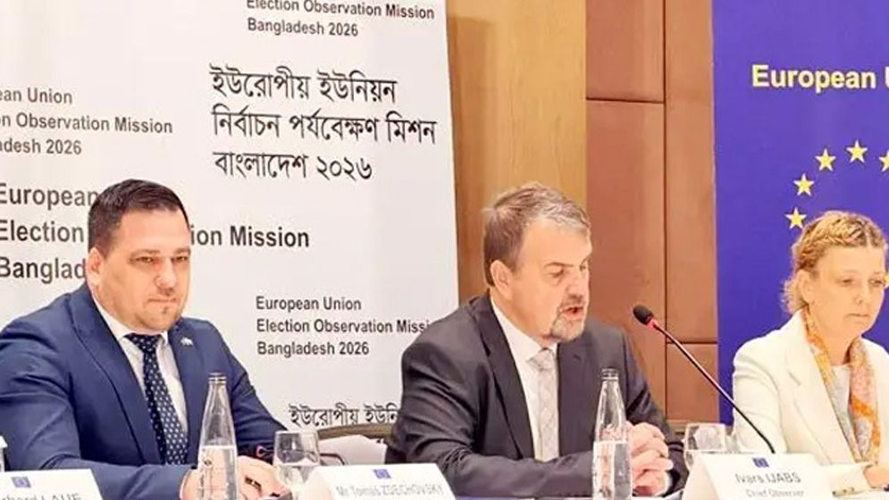 শনিবার (১৪ ফেব্রুয়ারি) রাজধানীর একটি হোটেলে আয়োজিত সংবাদ সম্মেলনে ইউরোপীয় ইউনিয়নের নির্বাচন পর্যবেক্ষক দল ত্রয়োদশ সংসদ নির্বাচন নিয়ে তাদের অভিমত তুলে ধরেন।