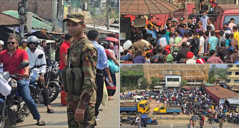 পেট্রল পাম্পগুলোতে তেলের সরবরাহ স্বাভাবিক এবং আইনশৃঙ্খলা পরিস্থিতি নিয়ন্ত্রণে রাখতে পুলিশের পাশাপাশি সেনাসদস্যরাও কাজ করছেন ।